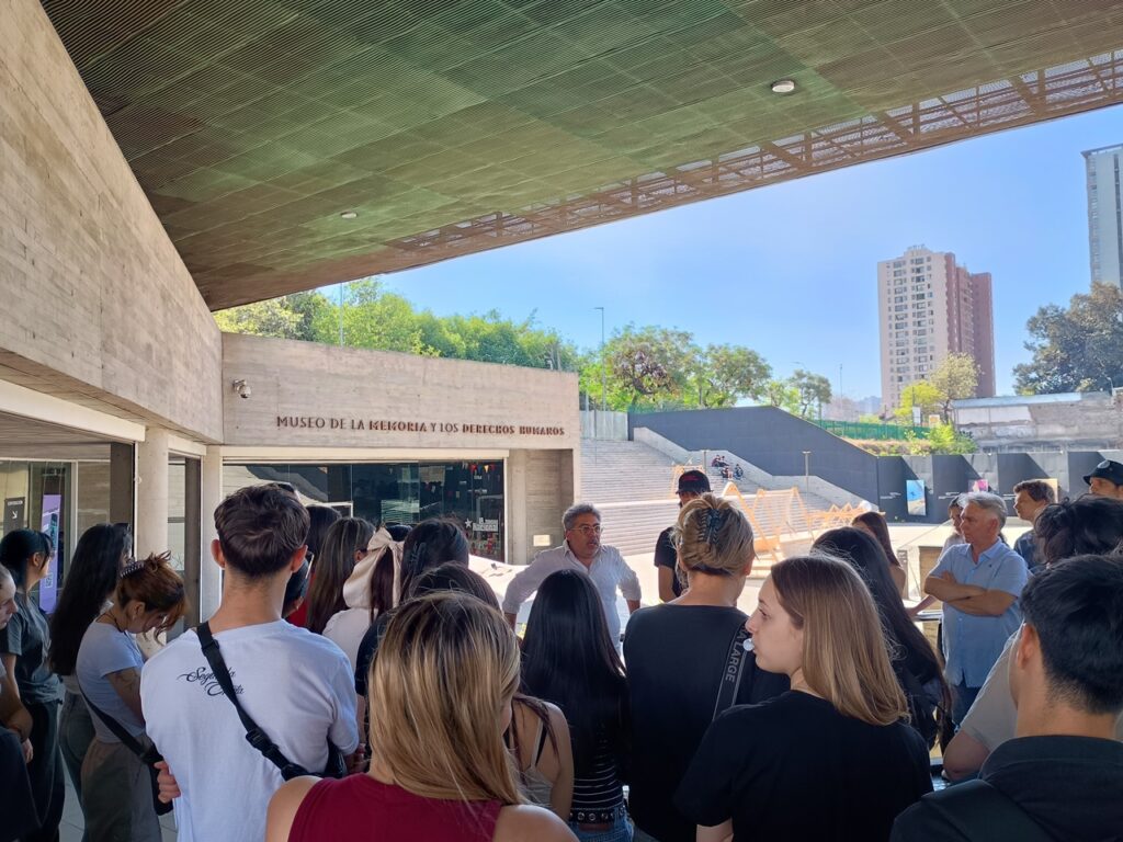 La jornada culminó en el Museo de la Memoria y los Derechos Humanos, obra de los arquitectos brasileños Mario Fuks, Lucas Fehr y Sebastián Tesch, inaugurada en 2010. El edificio se distingue por su volumen principal suspendido de vidrio y cobre, que articula salas de exposición, archivos y zonas de encuentro en un recorrido que combina sobriedad material y amplitud espacial. Al recorrido por el museo se sumaron el vicedecano de Docencia, Rodrigo Aguilar, y el representante del Centro de Estudiantes de Arquitectura USACH, Vicente Navarro.