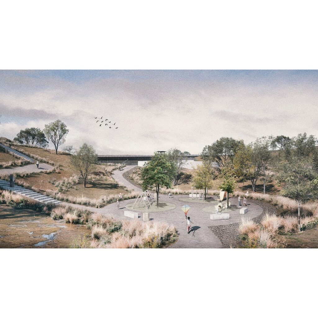 El proyecto surge de la preocupación por recuperar espacios residuales que afectan la calidad de vida de los vecinos, en un barrio con alta densidad y escasas áreas verdes. La propuesta organiza el terreno en tres niveles e incorpora un borde urbano de conexión, un paseo central con equipamiento social y recreativo, y senderos inmersivos con estaciones de juego y observación, transformando el sitio en un parque de restauración ecológica y uso comunitario.