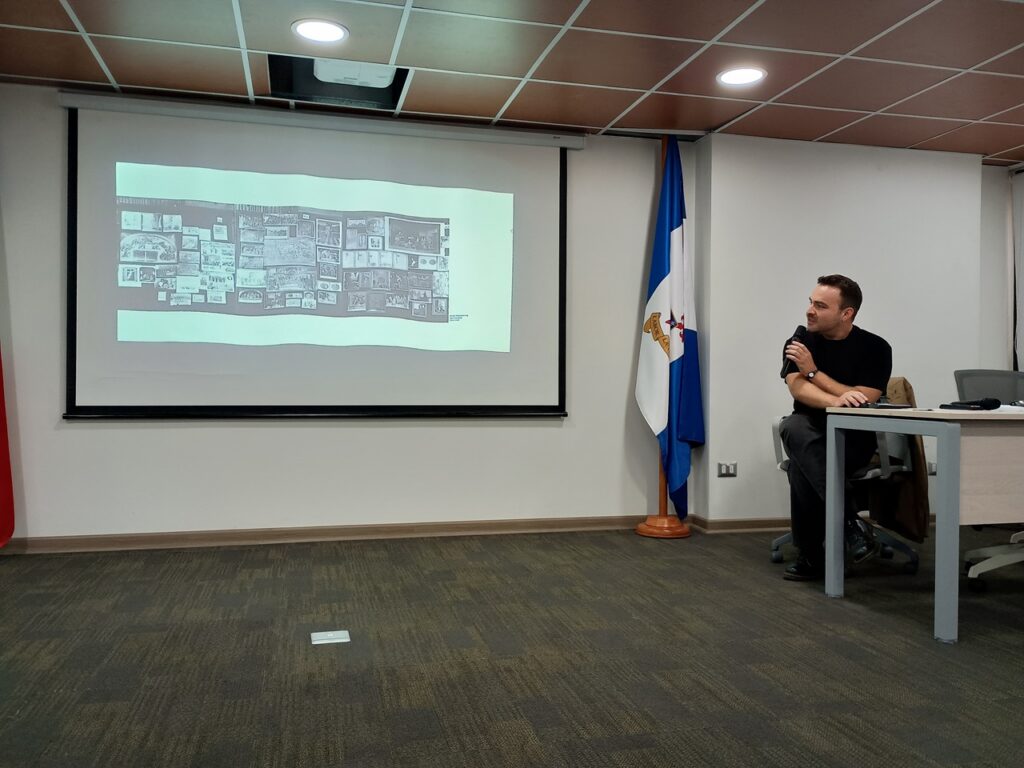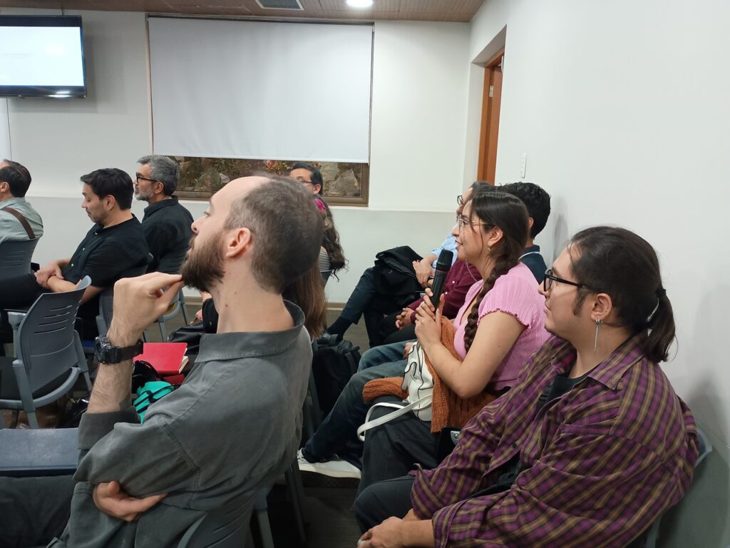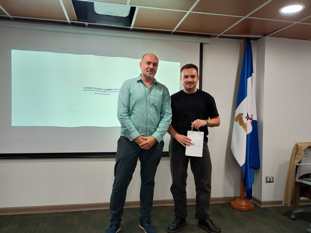 Posteriormente, el arquitecto Giancarlo Acosta compartió una presentación centrada en su trayectoria profesional, desde sus inicios en la carrera de Arquitectura USACH, su paso como egresado del MIDA hasta su trabajo actual en la oficina GAAG. Su relato se estructuró en torno a tres conceptos clave en su desarrollo: las imágenes, los artefactos y los concursos, ofreciendo una reflexión sobre los procesos formativos y las estrategias de inserción en el ejercicio profesional contemporáneo, con énfasis en medioambiente y sustentabilidad.